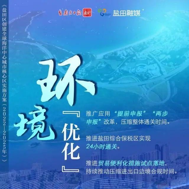 2月16日,盐田区召开新闻发布会,发布2022年区政府“一号文”《盐田区创建全球海洋中心城市核心区实施方案(2022-2025年)》(以下简称《实施方案》),《实施方案》结合盐田实际精准发力,分为三大部分、50条重磅政策干货,明确了盐田区抢抓“双区”驱动、“双区”叠加和“双改”机遇,创建全球海洋中心城市核心区的发展策略。