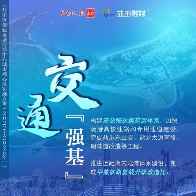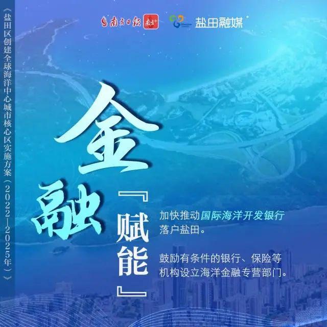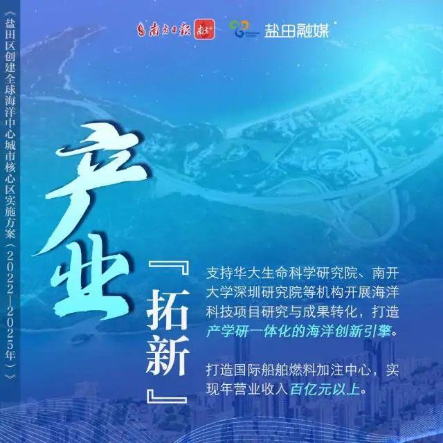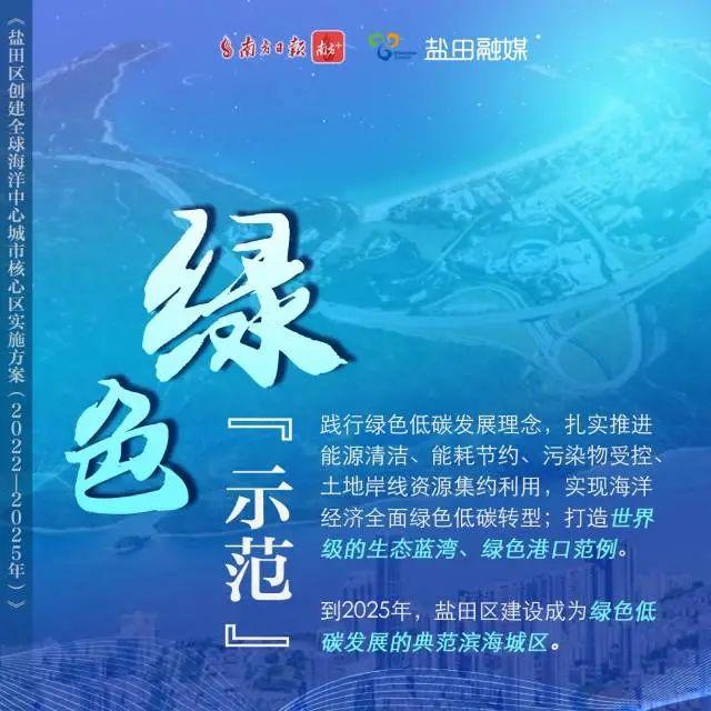 《实施方案》明确,盐田区要贯彻“海洋强国”战略,立足深圳市委市政府赋予的“国际航运枢纽和离岸贸易中心”定位,坚持产业兴盐、创新驱动,大力发展海洋经济,全力创建全球海洋中心城市核心区,成为“一带一路”全球贸易关键节点和国际国内双循环对外开放战略支点,建成海洋高端产业集聚区、海洋科技创新引领区、粤港澳大湾区海洋经济合作区和海洋生态文明建设示范区。