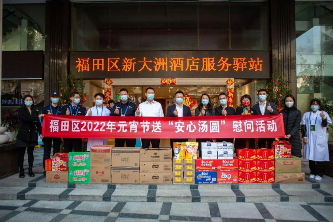 2月15日,正逢元宵佳节万家团聚之际,福田区领导蔡英权、绳万青、马艳在福田区社区小区组关心关爱小组陪同下,到新大洲酒店服务驿站开展元宵节送“安心汤圆”慰问活动,并代表区委区政府为奋战在疫情防控一线的工作人员送上节日暖心祝福,赠送了生活必需品、营养补给品等丰富礼包。
