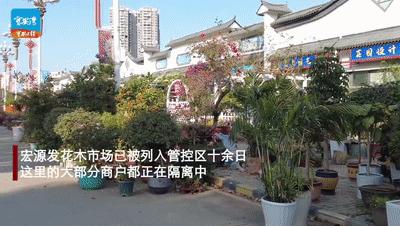 在防疫工作人员的协助下,位于管控区中的宏源发花木市场,花草树木依然茂盛。
