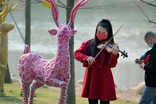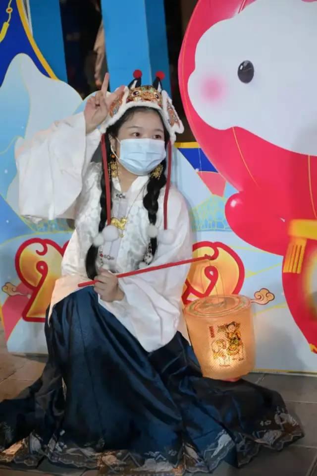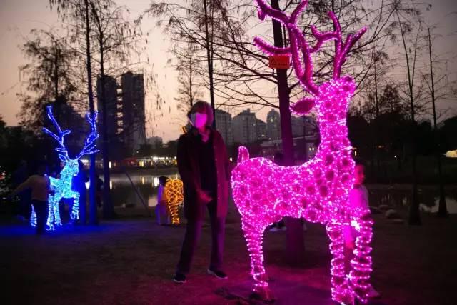 在象征着吉祥顺意的“鹿鹿亨通”灯组前,市民纷纷祈福打卡。