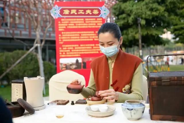 在非遗集市,福田非遗传承人与市民亲密互动,梅林凉帽、埔尾果茶、夏氏风车、詹氏功夫茶、元农年糕、皮影制作、钩编艺术、袁氏剪纸、脸谱等展现非遗民俗风采的项目让市民流连忘返。