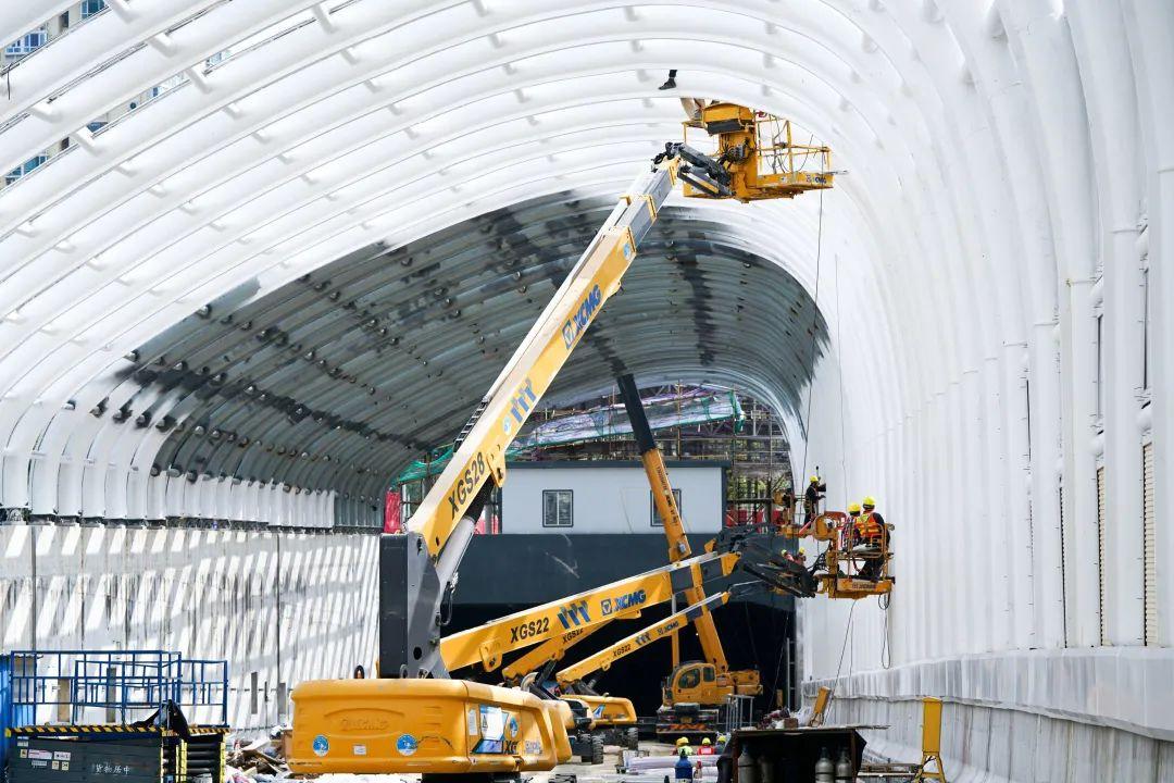 同时,桂庙路快速化改造工程地下西行隧道正在施工中;