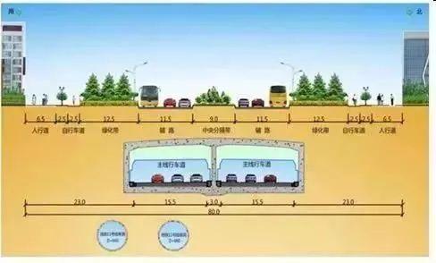 ●地下隧道下穿桂庙路片区,为双向6车道加集散车道,设计车速80公里/小时。