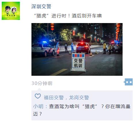 众所周知,一直以来深圳交警严查严打涉酒驾驶违法行为,并且将查酒驾的代号命名为“猎虎”。不定时、不定点在全市范围内开展行动,严查酒后驾驶的违法行为。