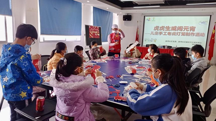 黄贝街道新秀社区党群服务中心开展了儿童手工老虎灯笼制作活动,旨在弘扬传统文化,传承中华文明,营造喜庆与热闹的节日氛围,10余名辖区儿童参加了活动。