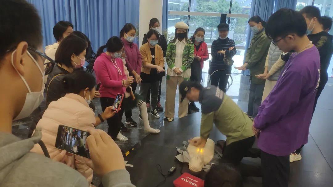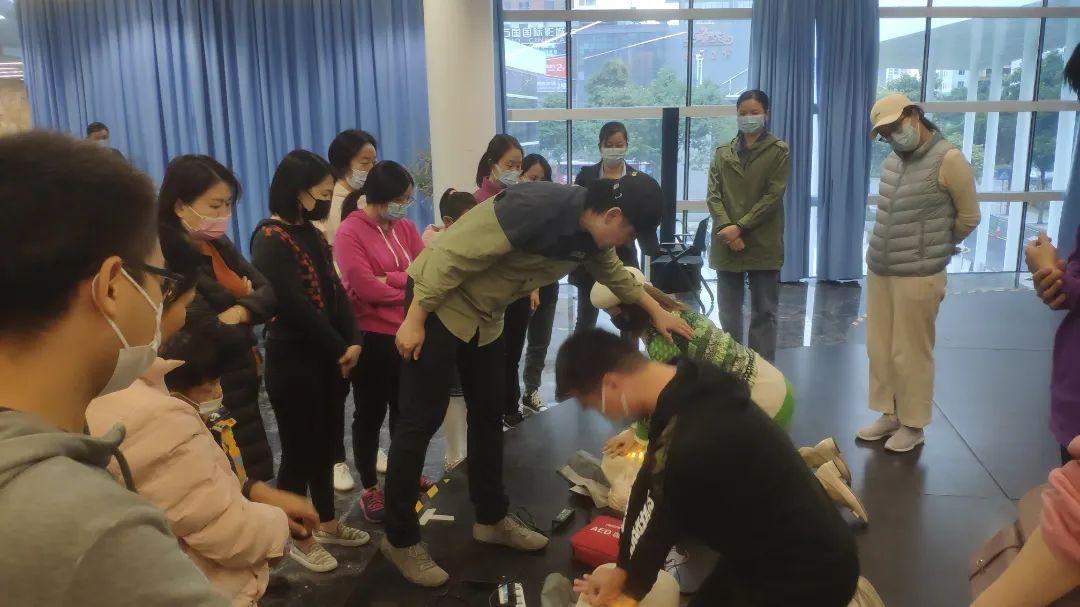 应急救援班将现场配备心肺复苏模拟人、自动体外除颤器(AED)、气道异物梗阻训练器、婴儿模型等器材,采用授课、演示、投影、实操等方式,以老师讲解、示范为主,鼓励学员演示、操作,通俗易懂,简明实用。