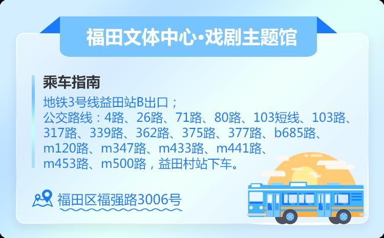 福田文体中心·戏剧主题馆二楼沙龙区(福强路3006号,益田地铁站B出口附近,活动场地不提供停车位,请绿色出行)