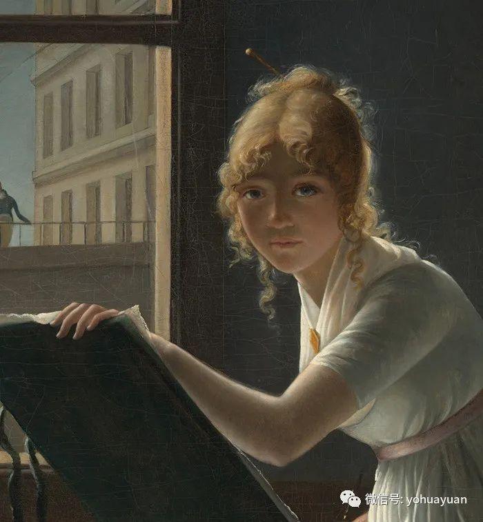 画板背面的深色、墙壁和窗框、椅子上的窗帘部分,以及其他一些细节;