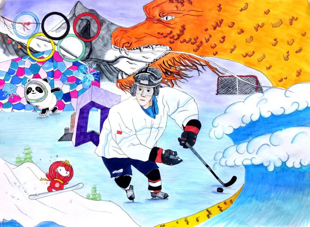 陈嫚妮 / 13岁 /《冰上相约》/ 4开 / 线描 / 2021年