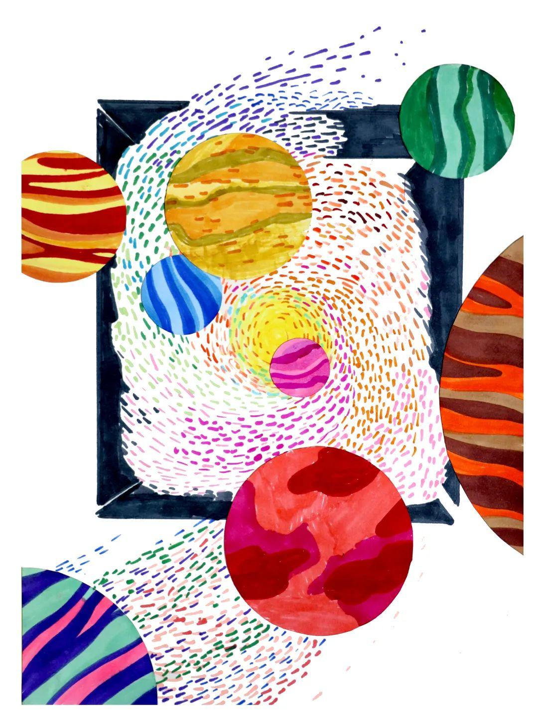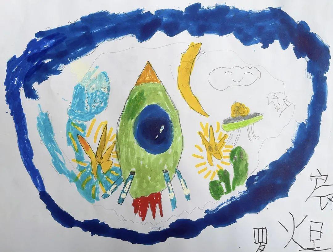 张子琳 / 8岁 /《宇宙无边无际》/ 20cm×27cm / 纸本绘画 / 2021年