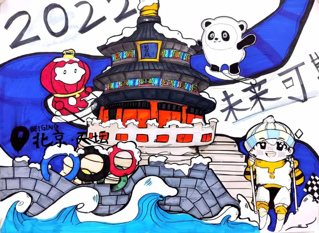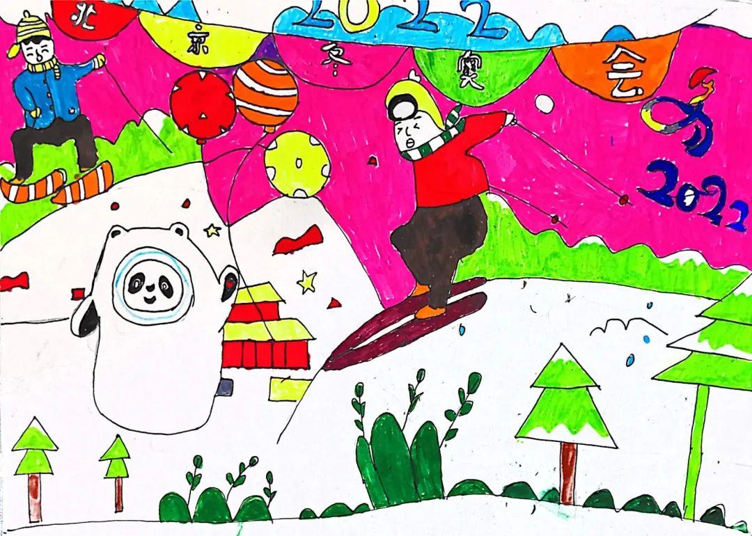 张灏菁 / 7岁 /《冰雪冬奥》/ 8开 / 马克笔绘画 / 2022年