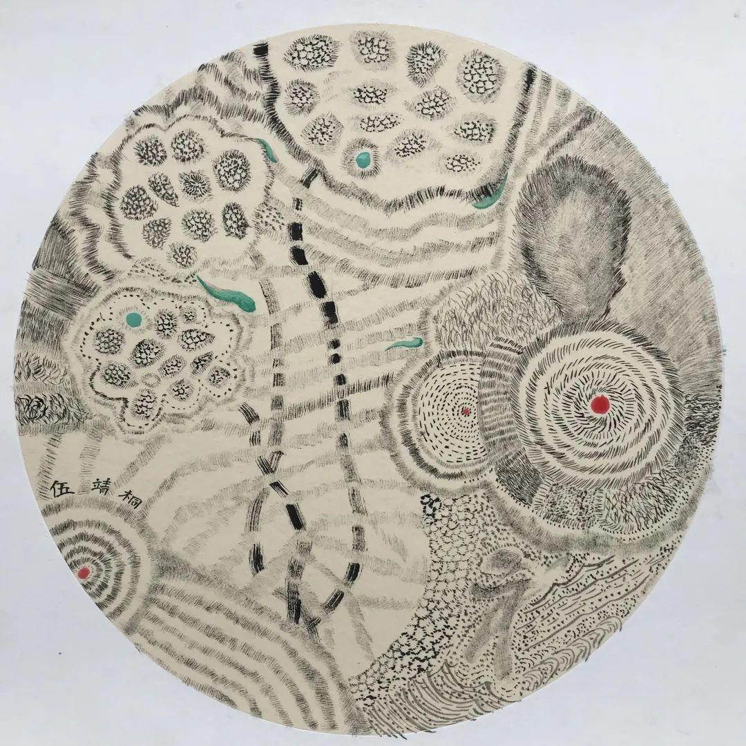 伍靖桐 / 12岁 /《荷塘绿语》/ 33cm×33cm / 水墨 / 2022年