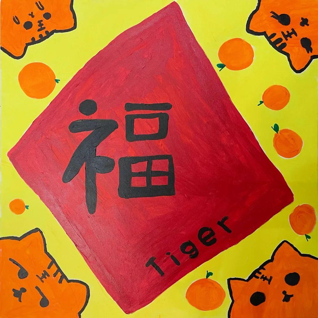 楼潇珺 / 5岁 /《新年福虎》/ 80cm×80cm / 丙烯画 / 2022年