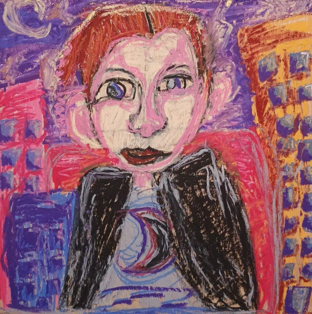 陈韵萌 / 7岁 /《我的爸爸》/ 30cm×30cm / 板上油画棒 / 2022年