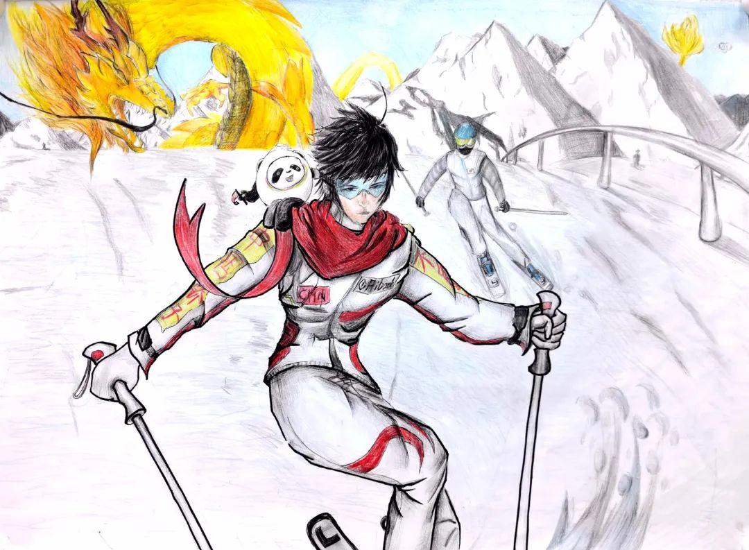 卢锦宏 / 7岁 /《我的冬奥梦》/ 8开 / 马克笔绘画 / 2022年
