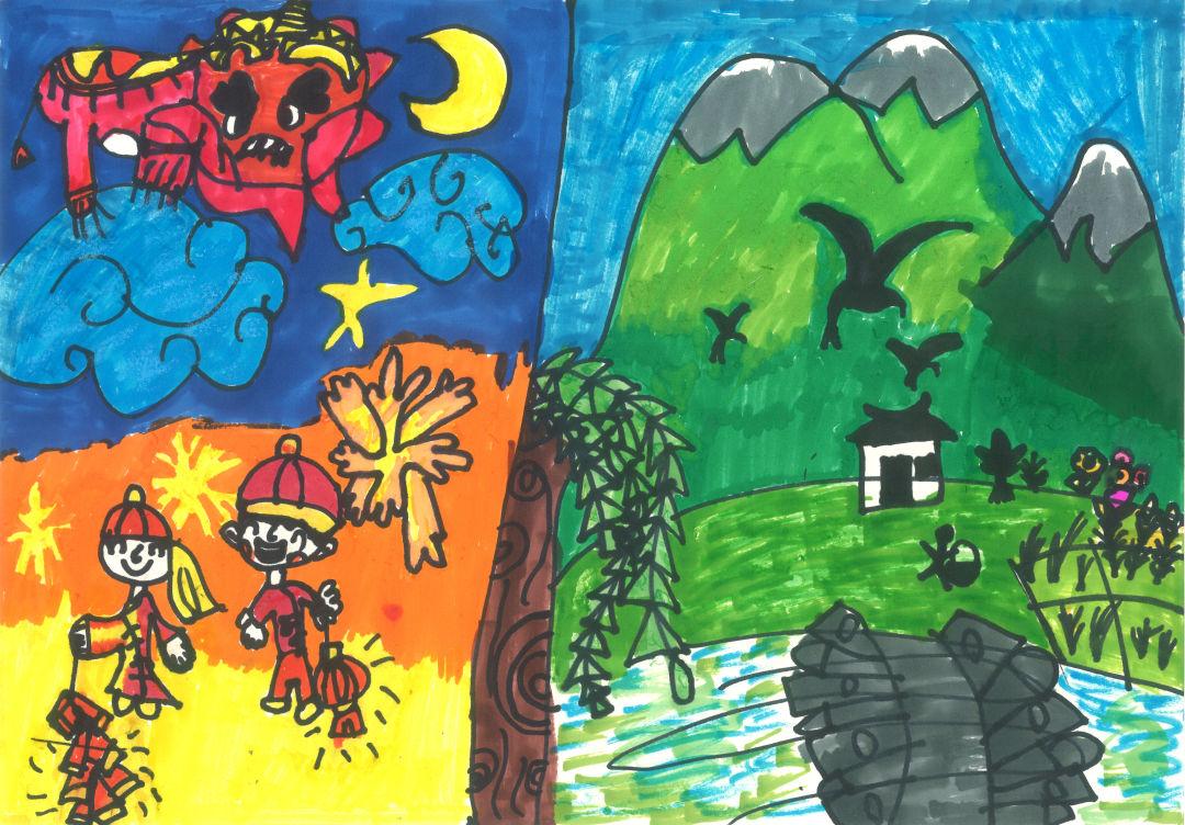 周暻晗 / 10岁 /《喜庆》/ 38cm×27cm / 纸本绘画 / 2021年