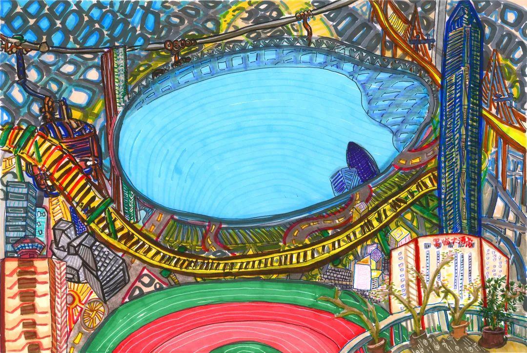 黄涣津 / 9岁 /《深圳湾体育馆》/ 17cm×39.1cm / 纸本绘画 / 2021年