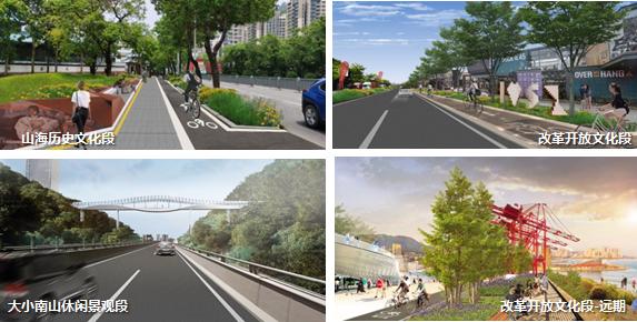 本次工程对标国际知名案例,从促进赤湾发展角度出发,通过绿道网络力图平衡交通参与者的路权关系,串联10大山海热点资源,构建安全、畅顺、舒适、美观的慢行示范区。