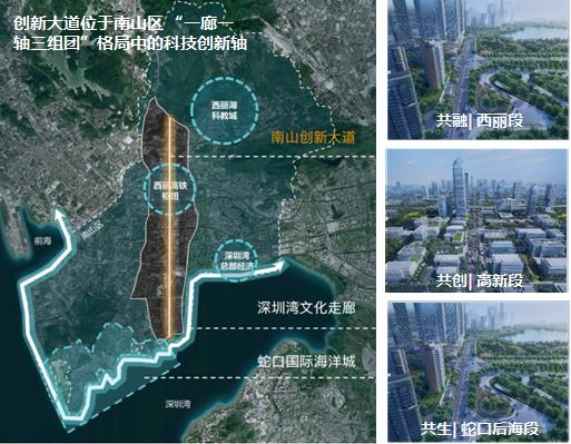 创新大道位于南山区 “一廊一轴三组团”格局中的科技创新轴,全长约8.79公里。