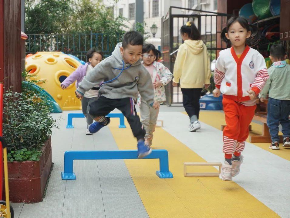 操场、大厅、楼梯、走廊、过道、桌椅……幼儿园每一处有限空间都成为孩子无限的活动可能。在不同运动环境中,根据幼儿年龄特点和动作发展情况,制定多种运动目标,激发孩子运动兴趣,投放方便取放、玩法多样、富于变化的各类活动器械。整合资源、适度创新,体能循环、悦享运动,共促幼儿健康发展。