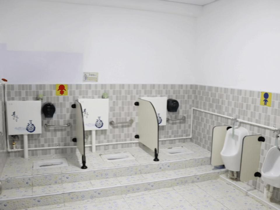 卫生间更换防滑地板,提高安全系数;增加水龙头和厕所蹲位,有效减少孩子的消极等待;利用隔断区分男女厕所,让孩子从小树立男女性别差异的意识,形成自我保护和尊重他人隐私的观念。