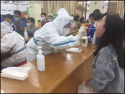 在保证科室工作正常运行的同时,陈少红将科室人员分成两个采样队伍,分赴 2个采样点采样。她自己更是积极承担采样点长工作,奋战在疫情防控一线,忙碌而坚定的身影也影响着每个科员。