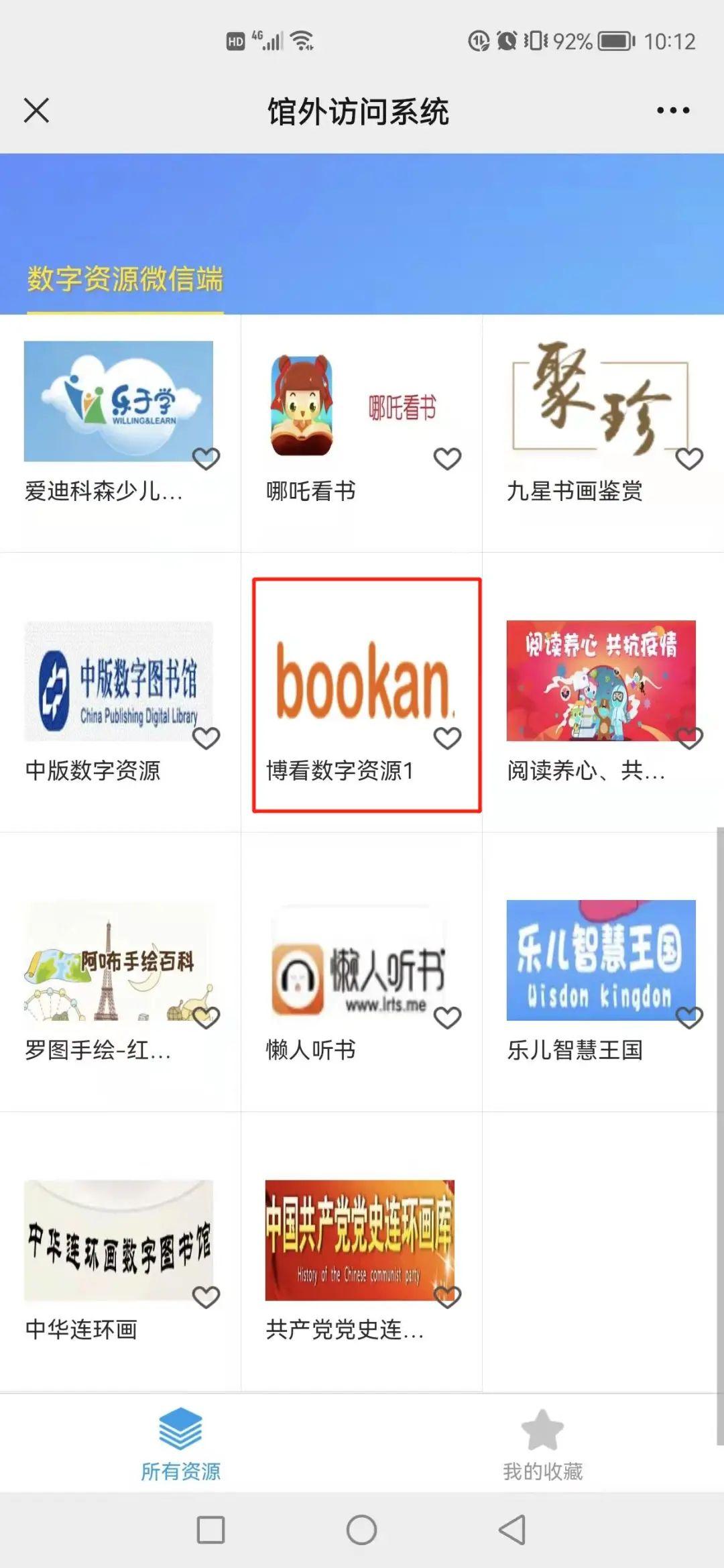 STEP2:完成读者证登录后即可使用罗湖区图书馆的数字资源数据库。点击“博看数字资源”,即可进入数据库进行访问。