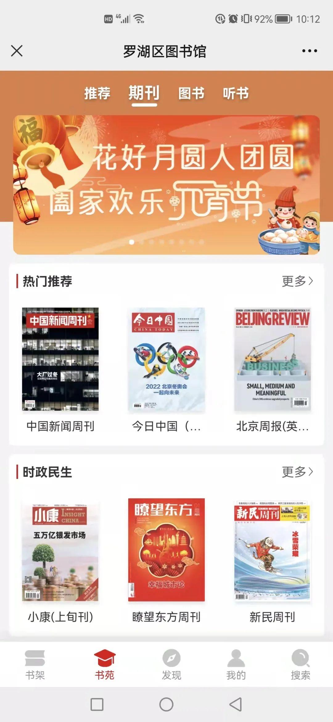 罗湖区图书馆博看数字资源汇集期刊、图书、头条、广播、专辑等丰富内容,资源不断更新,为读者提供便捷多样的阅读服务,丰富读者精神文化生活。