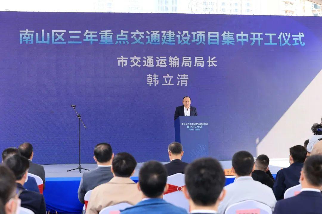 仪式上,韩立清在致辞中代表市交通运输局对南山区重点交通建设项目集中开工表示祝贺。