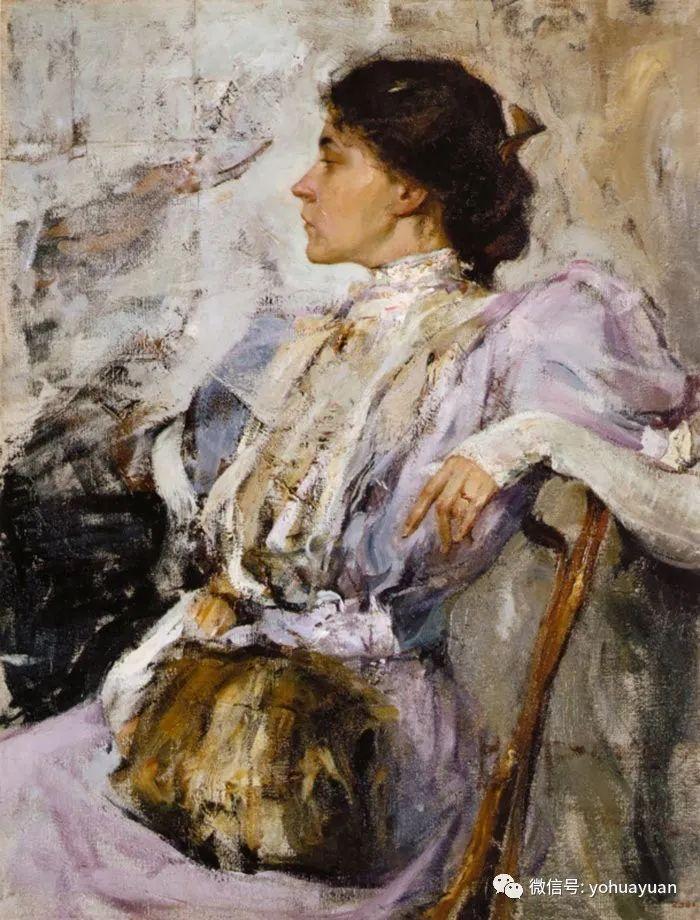 尼古拉·费申用精细的渲染、干净柔和的边缘和细致的细节,画出她的脸和手。