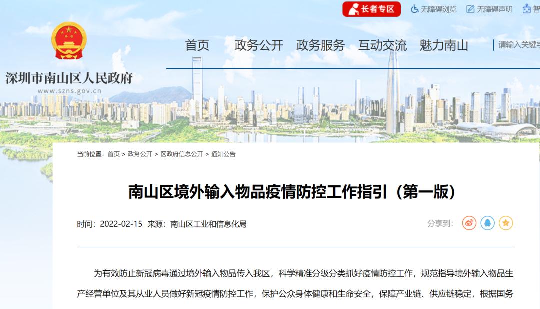 南山区境外输入物品疫情防控工作指引(第一版)