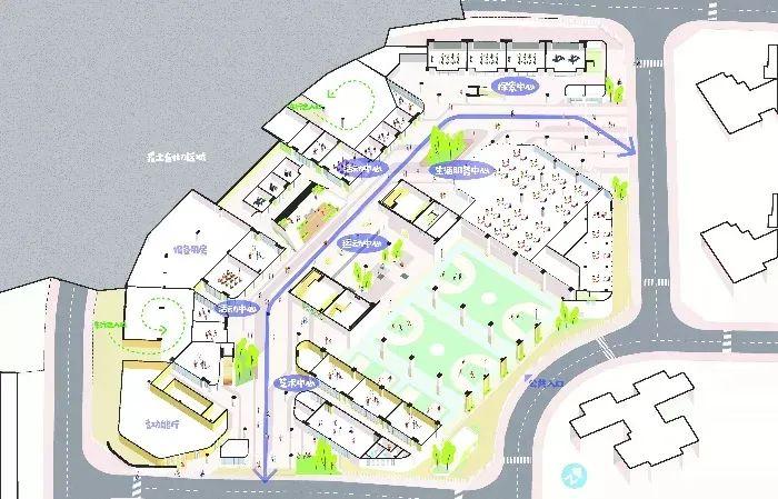 “书山有路勤为径”,该校还规划在两个出入口半地下层建立连通,形成一条充满活力、趣味性和互动性的“秘径长廊”。
