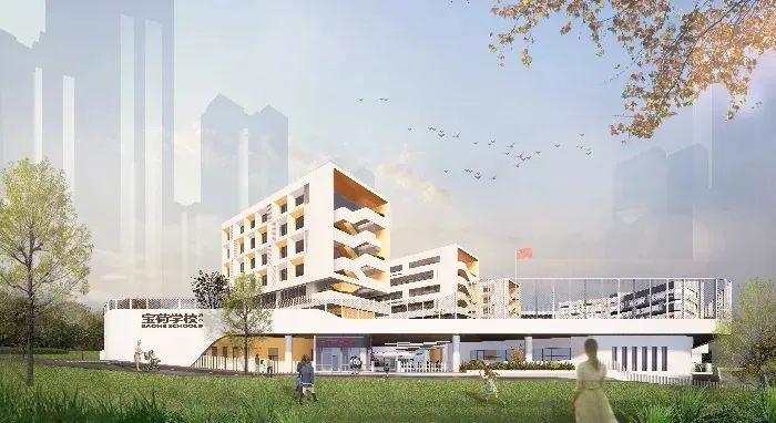 该校选址宝龙南约片区,占地面积17434㎡,办学规模为36班(小学24班、初中12班),拟提供1680座公办学位。