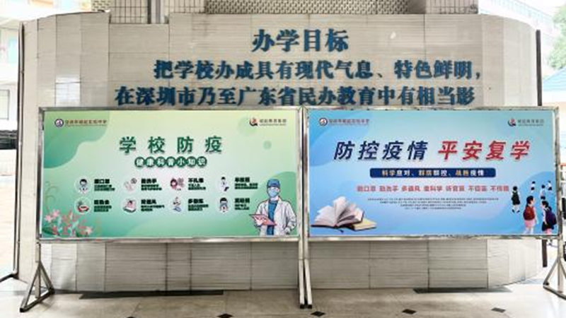 17日,记者走进海韵学校和崛起实验中学了解开学准备情况。记者从宝安区海韵学校了解到,该校严格落实区教育局相关开学防疫准备工作部署,制定防疫相关开学工作方案,各班级配备一名教学专员对学生身体健康状态实时关注和把控。记者在深圳市崛起实验中学看到,该校师生返校工作实施方案、学校疫情防控应急预案等齐全,还配有电子测温仪器、口罩、洗手液、消毒液等防护工具,设置了防疫专项宣传栏,落实学生防疫知识科普教育工作。