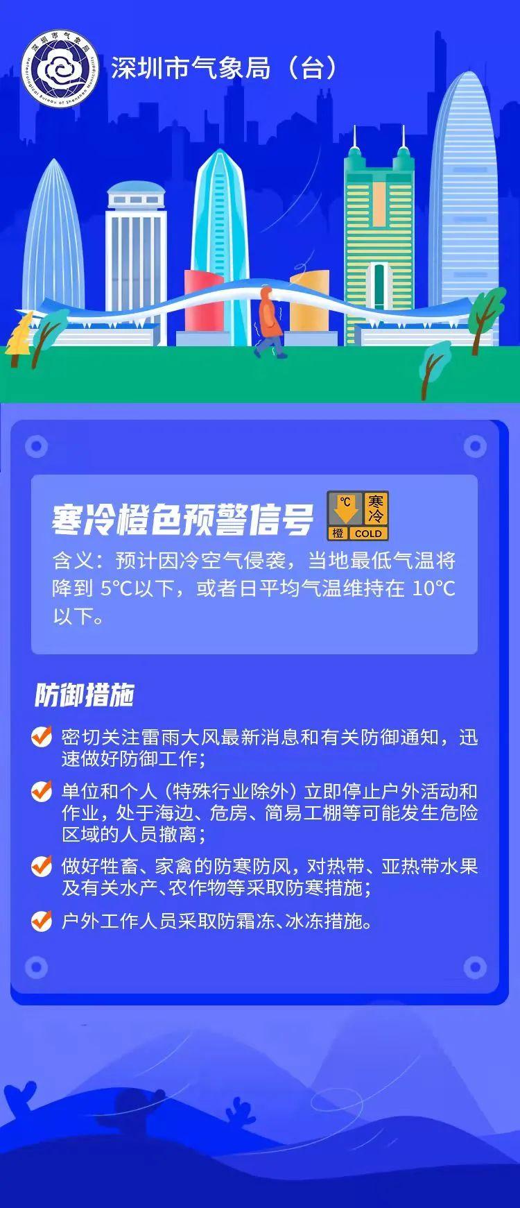 深圳气象局发布今年首个全市陆地寒冷橙色预警