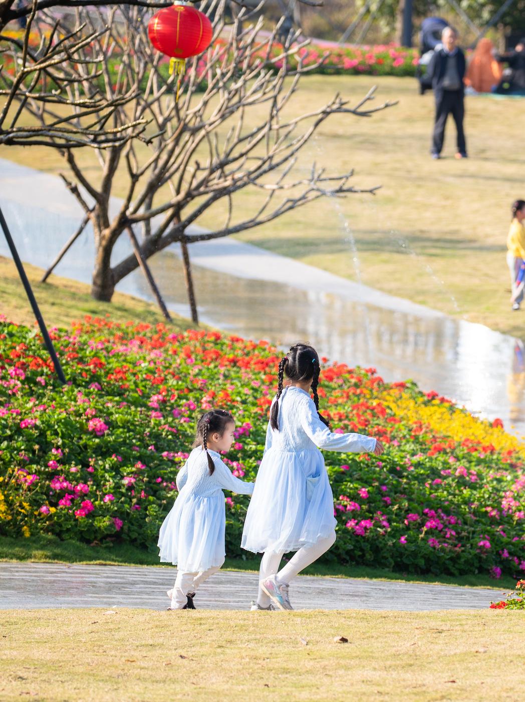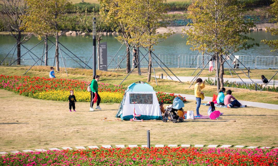 紫荆园的草地上、运动场地上,有许多露营的市民,带着孩子玩乐的家长。环绕公园的长廊和小径上,处处鸟语花香。