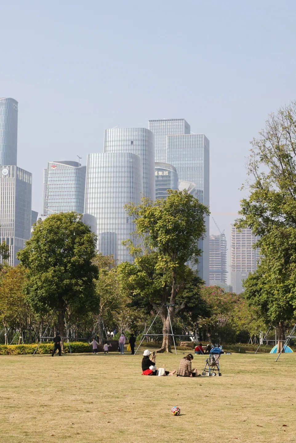 桂湾公园临河而建,站在河堤上,可隔河远望前海深港国际金融城的高楼大厦,近可欣赏河面风光。阳光在水面洒下光点,波光粼粼,如梦似幻——