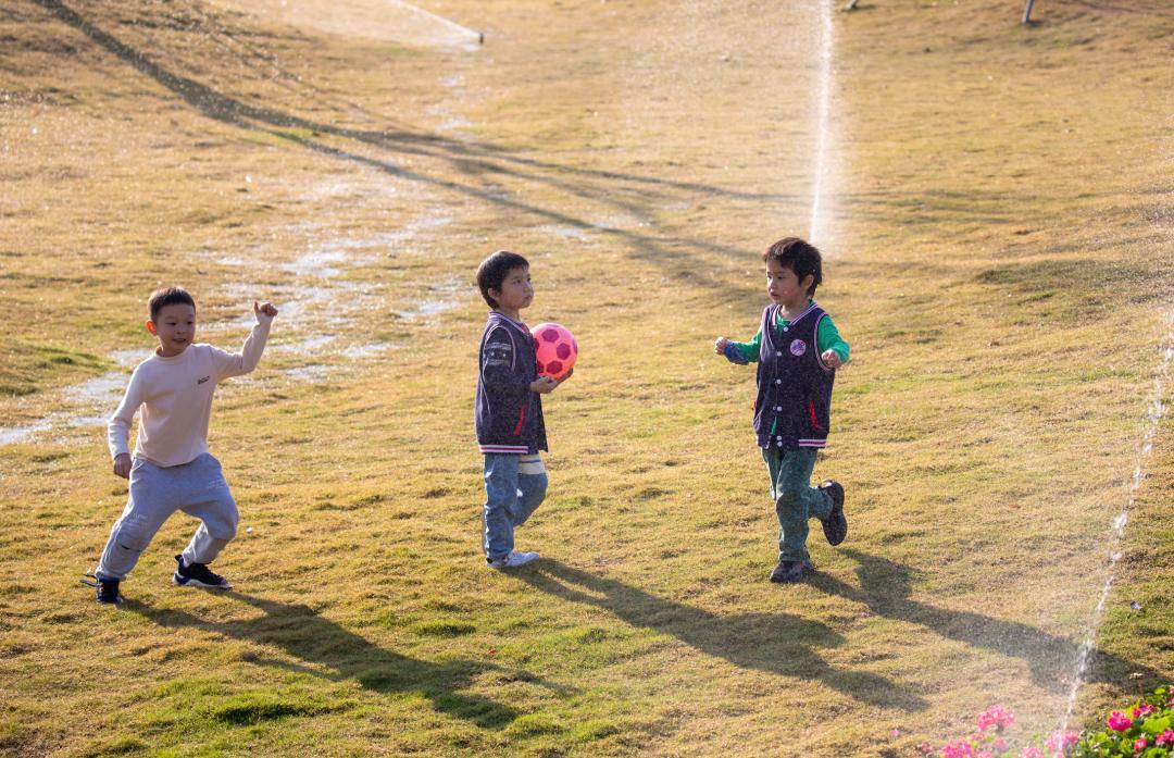 公园的草地上,到处是玩耍的小孩