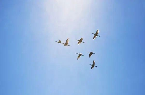 第二个五日,此时南方天气回暖,大雁成群结队从南方飞回北国的天空。