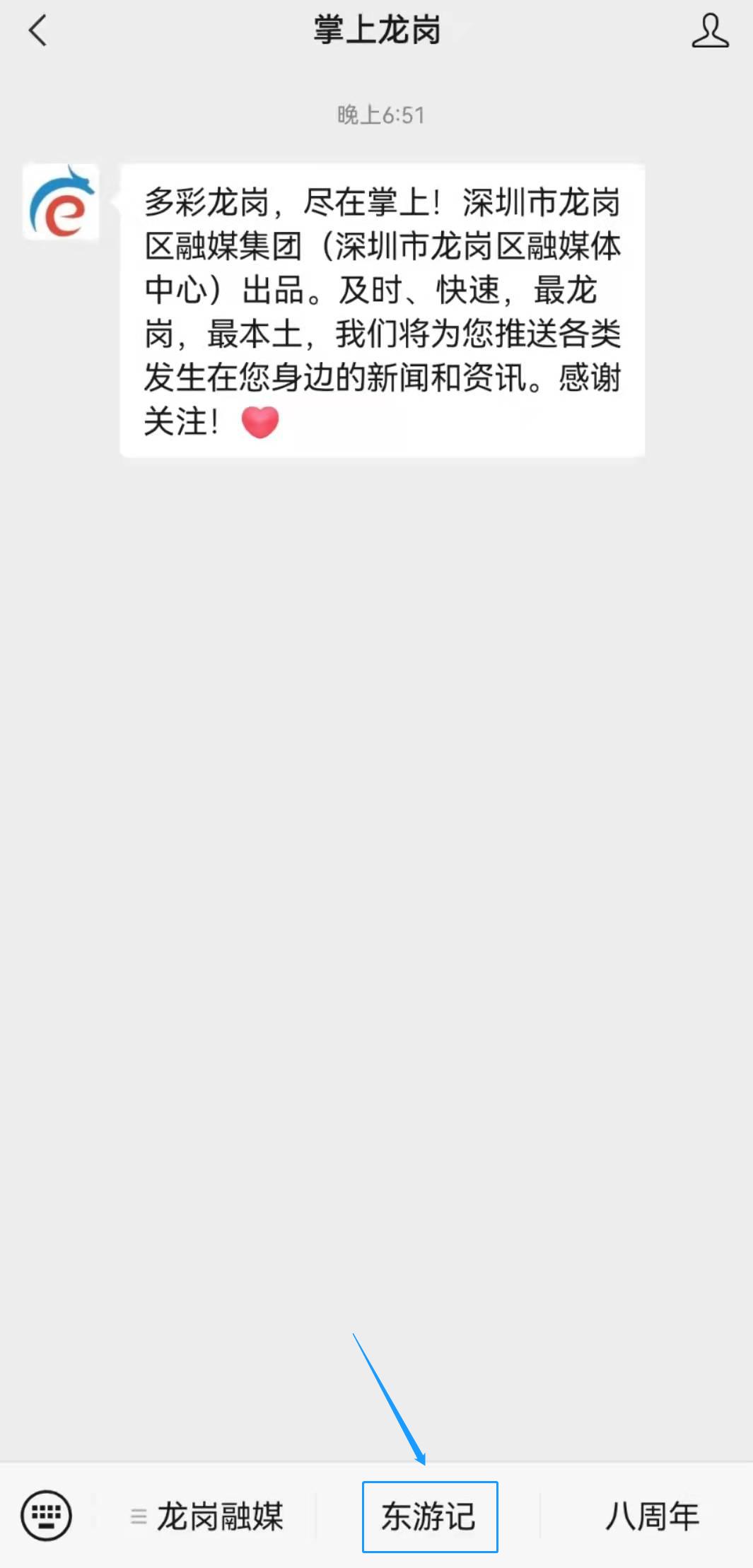 关注“掌上龙岗”微信公众号,点击本文文末“阅读原文”或子菜单“东游记”提交作品。