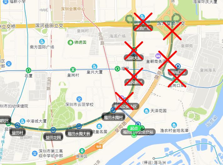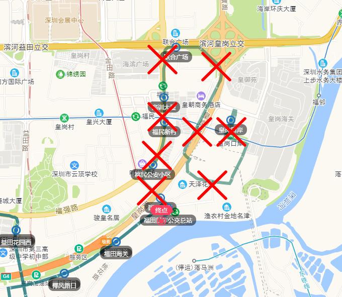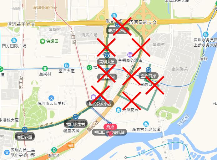 往福田口岸方向取消“国花路口、福民公安小区”等2个单边公交停靠站。