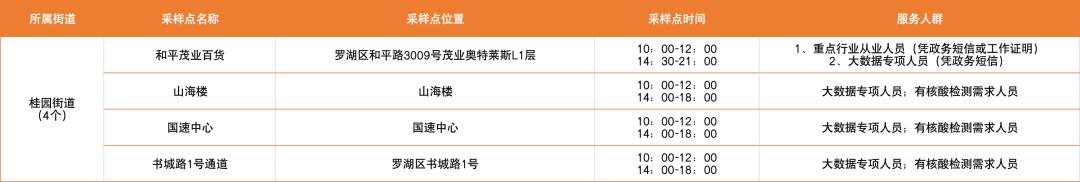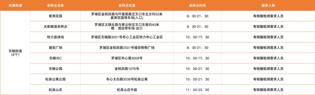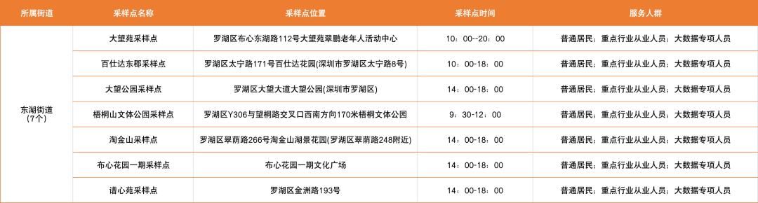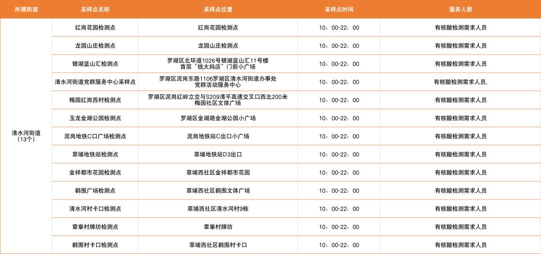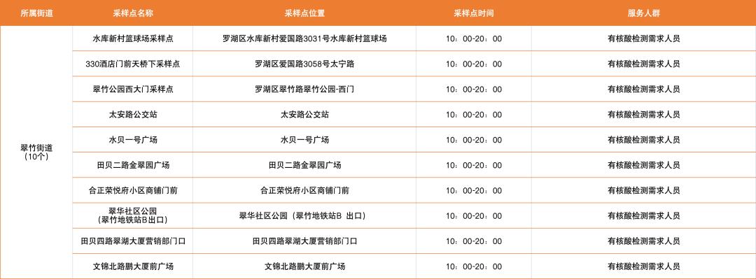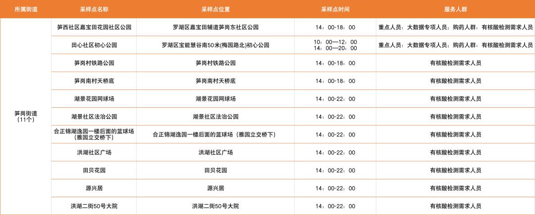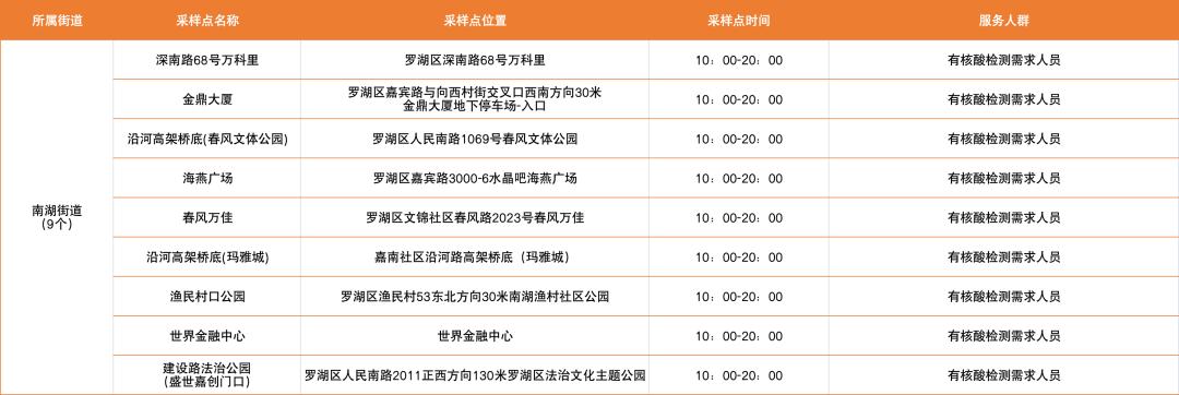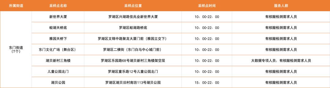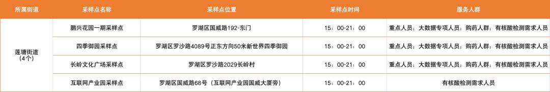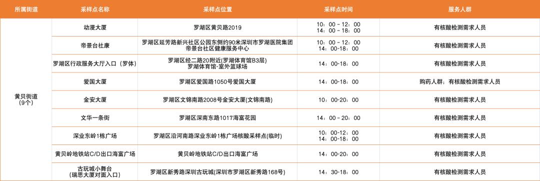 罗湖区设置了以下免费核酸采样点