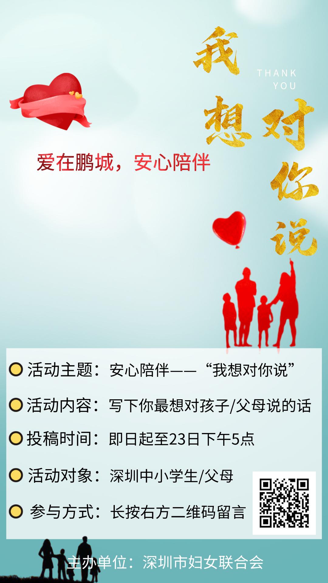 深圳市妇女联合会联合各区妇联及相关部门,推出的“安心行动”之开学季“我想对你说”活动现在开启啦!