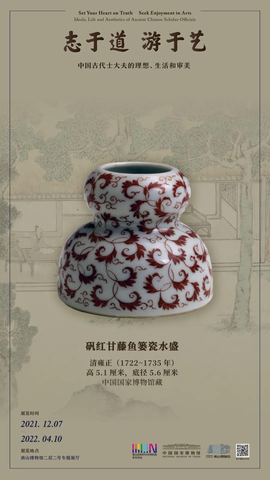 水盛又称水盂、水丞、水中丞,是贮水研墨的小型器皿。此水盛因形似鱼篓而得名,外壁布满红色蔓枝纹。瓷制水盛在明清两代广为行世,数量繁多。".replace(/r/g,"").replace(/n/g,"