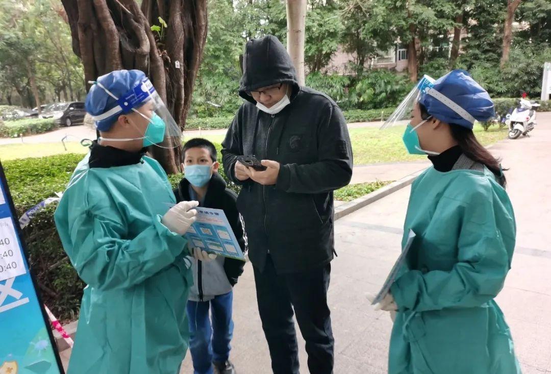 ▲深业集团沙河医院青年志愿者上户协助核酸检测排查