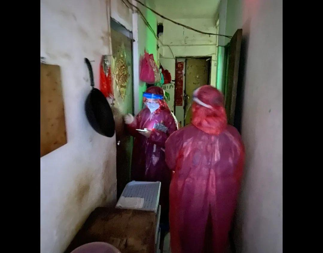 ▲华夏城视青年志愿者上户协助核酸检测排查