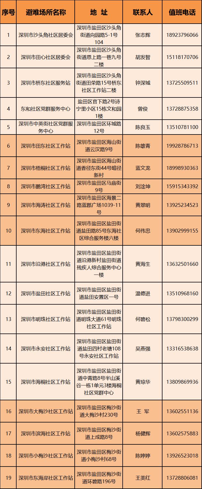 盐田区19个避寒场所信息一览表