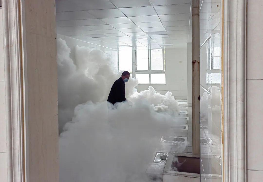 后勤人员对学校进行全面消杀