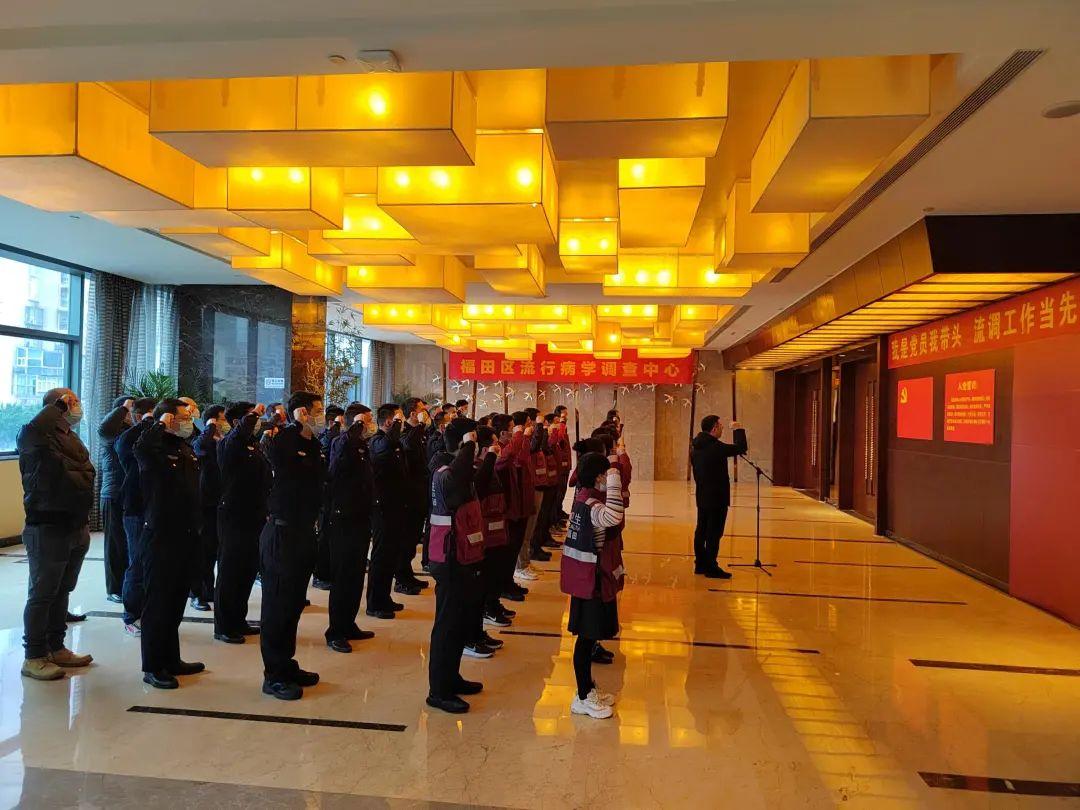 2月20日下午,福田区流调工作专班在区流调中心(绿景酒店)举行“我是党员我带头,流调工作当先锋”重温入党誓词宣誓活动。流调专班临时党支部的党员报名参加了这次活动,福田区委副书记、政法委书记蔡英权领誓。